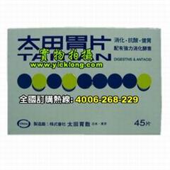 抗酸.健胃 配有强力消化酵素 主治:酒食过量、食欲不振、消化不良、胃痛、胃酸过多、胃灼热 用法用量:1次量成人3片、8~14岁2片、5~7岁1片、按上列份量1日3食后或食间服用。 香港注册编号:HK-44838 制造厂:株式会社太田胃散日本.东京健络通活络油。 规格:45片